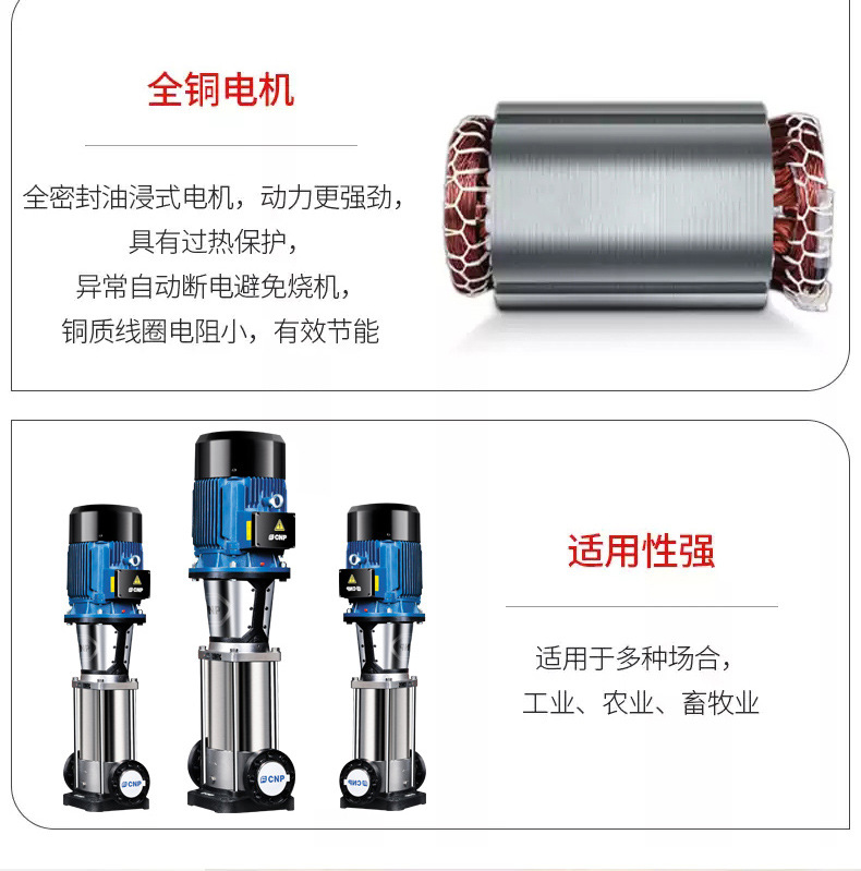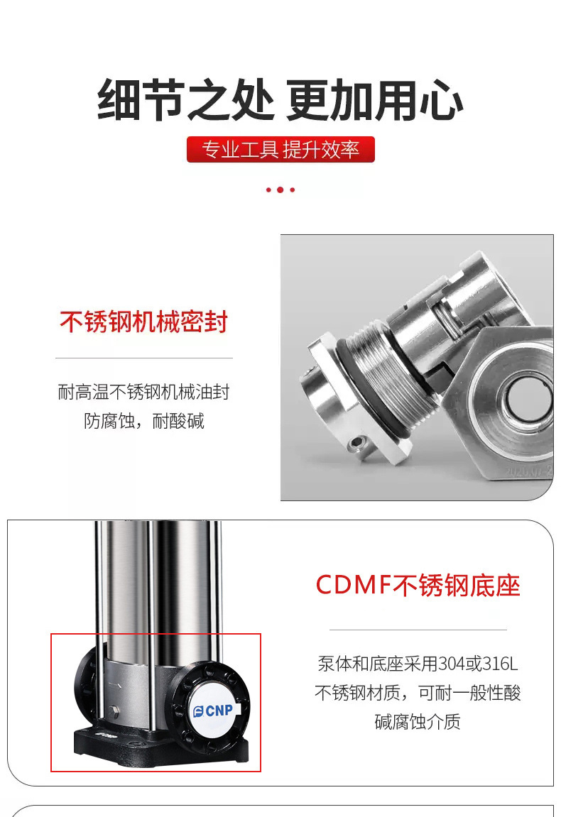 南方CDM/CDMF系列為參照歐洲標準最新自主研發(fā)的新一代、高效率非自吸立式多級離心泵。產品采用全新的工業(yè)設計,能效指標達到MEI≥0.7,具有節(jié)能、低噪、環(huán)保及機構緊湊、外觀美觀、重量輕、使用維護方便、可靠性高等特點。