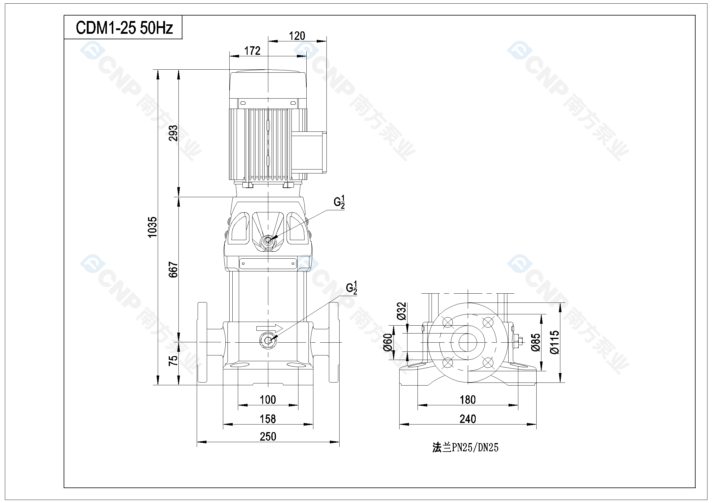 南方泵業CDM1-25水泵明細參數