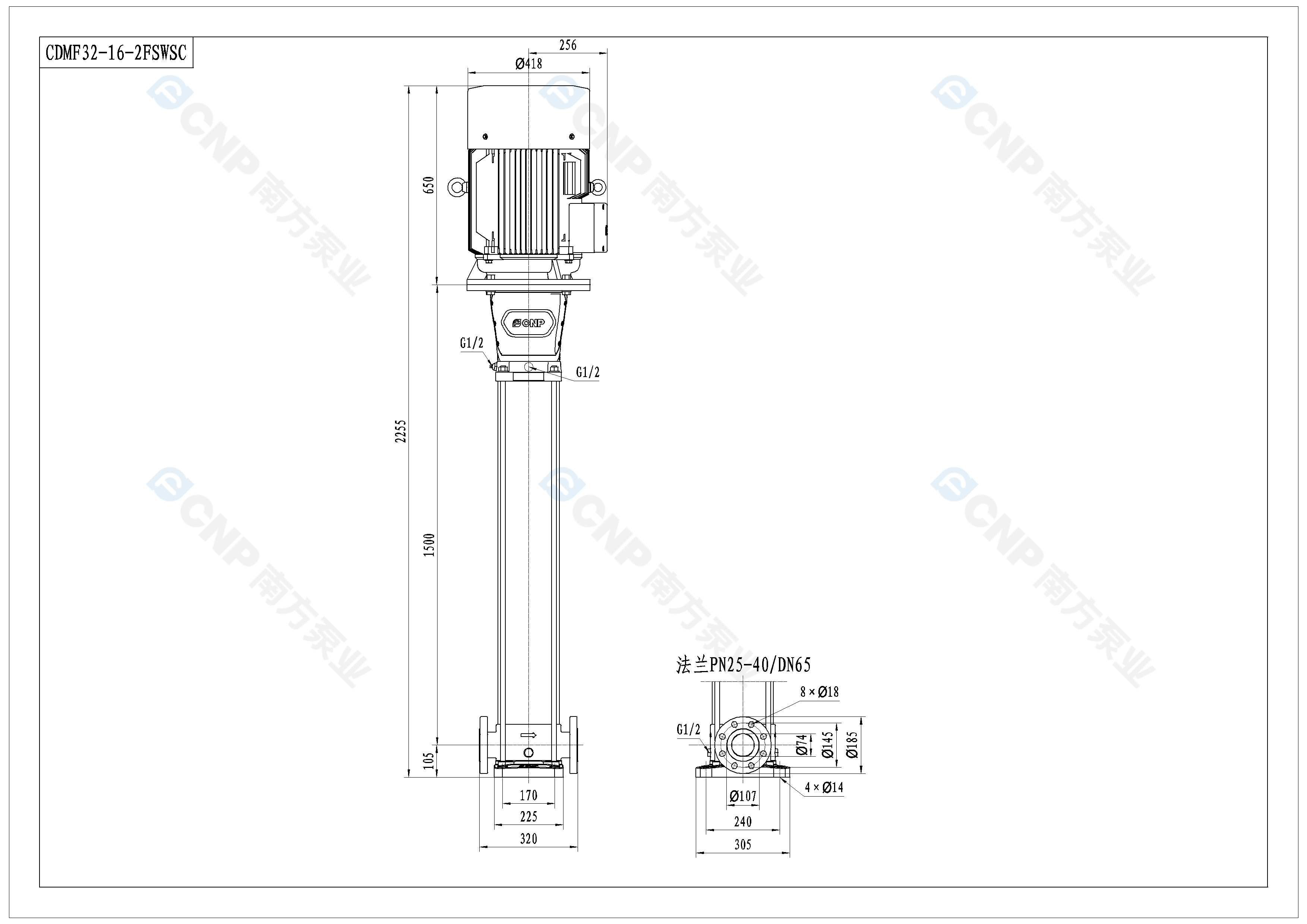 南方泵業CDM32-16-2水泵明細參數