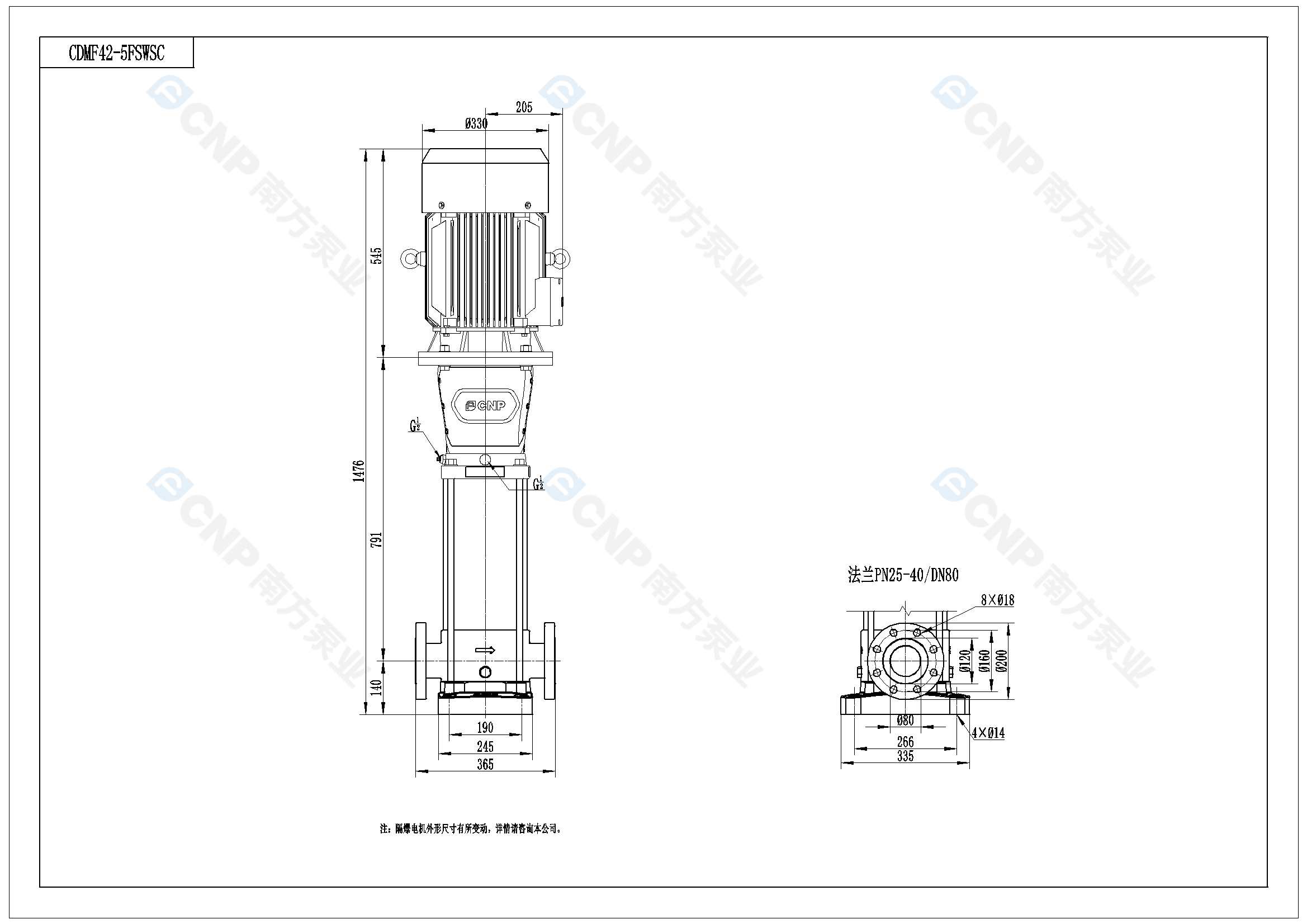 南方泵業CDM42-5水泵明細參數