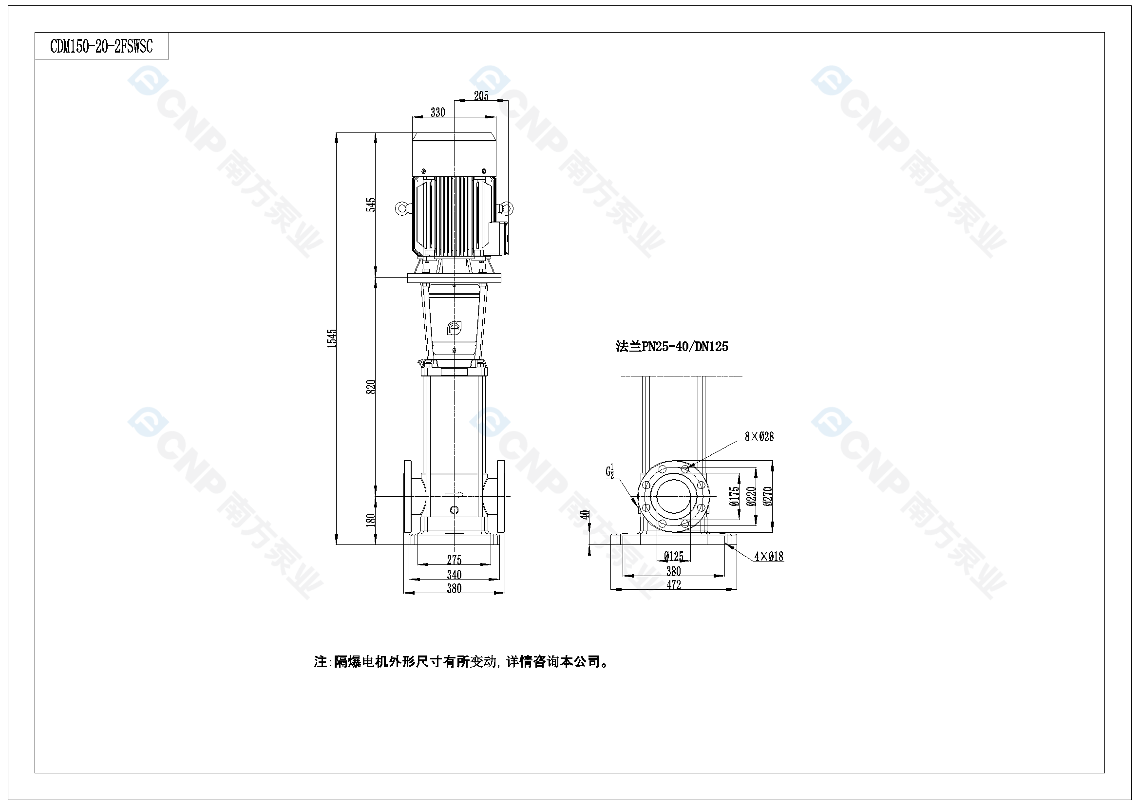 南方泵業CDM150-2-2水泵明細參數