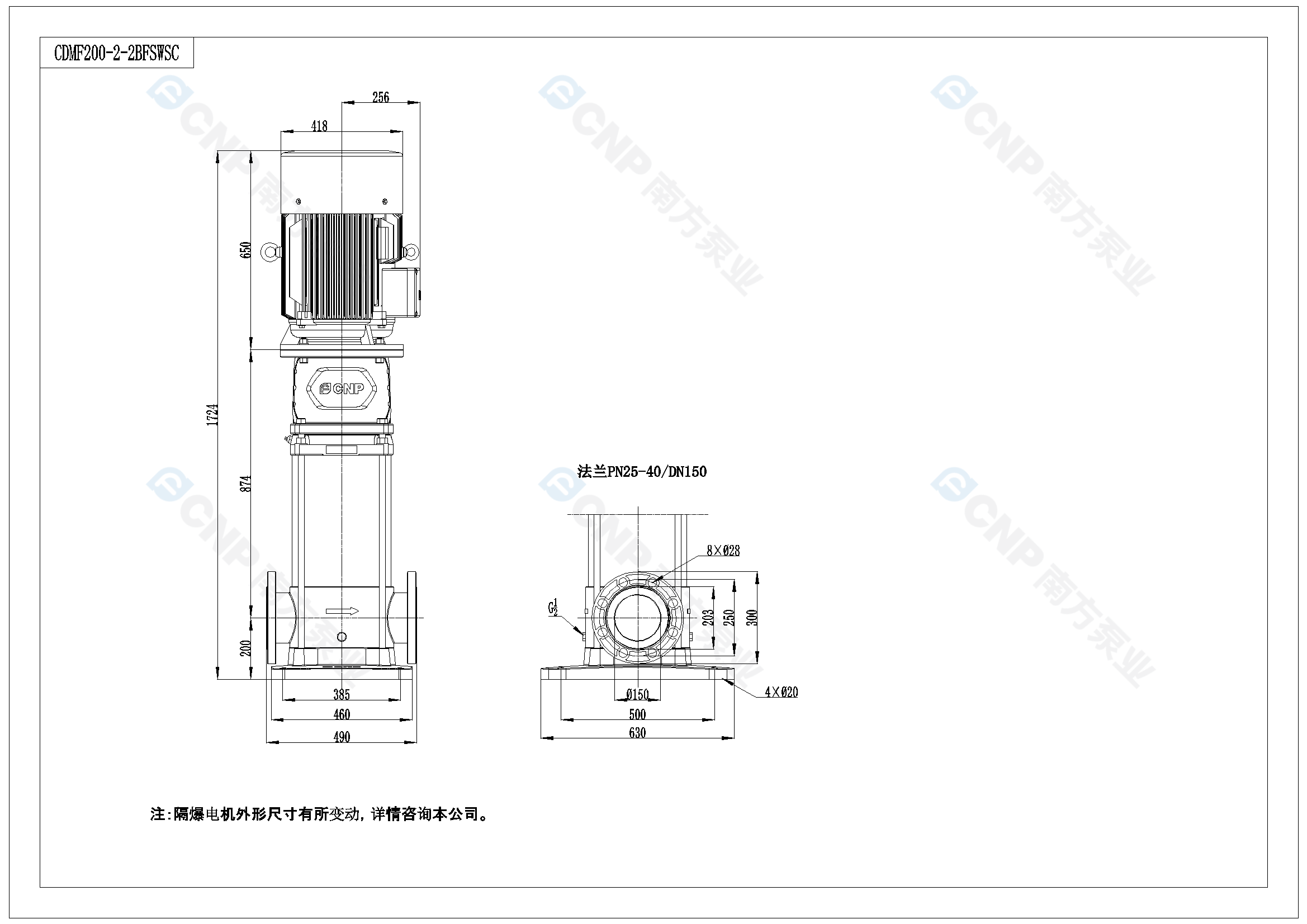 南方泵業CDM200-2-2B水泵明細參數