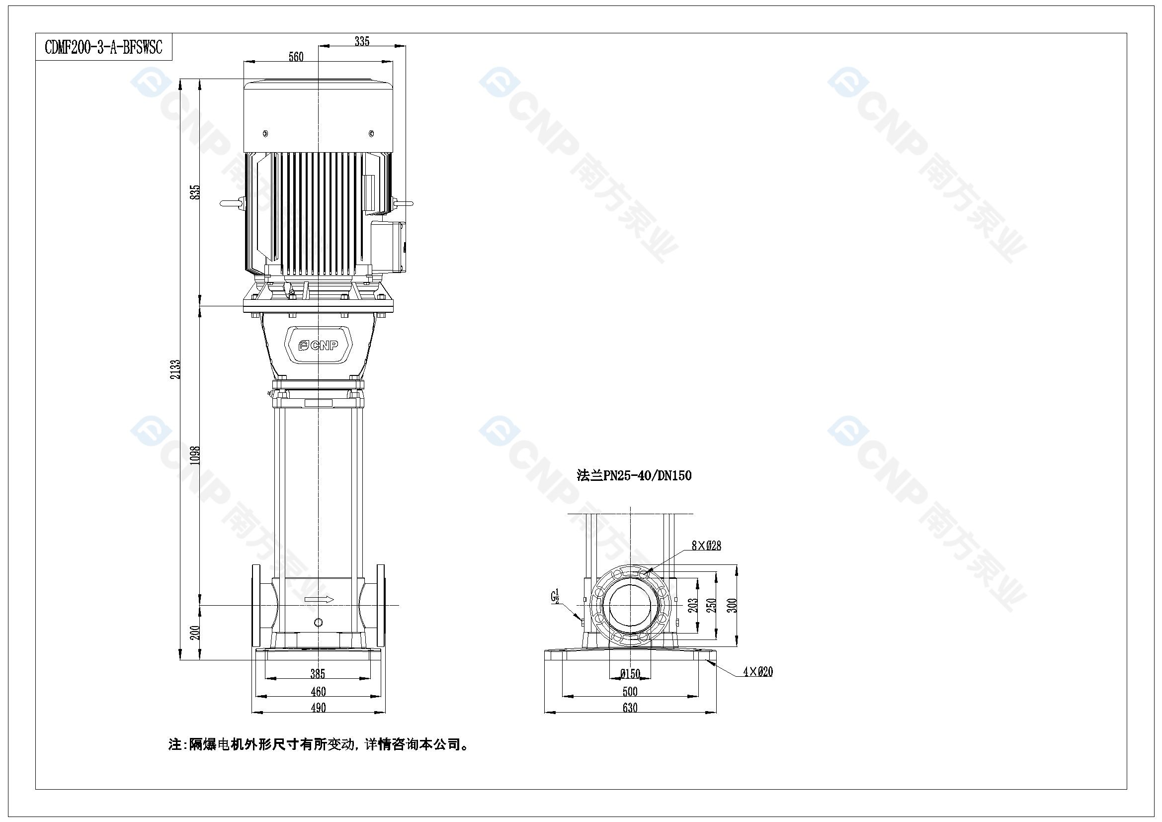 您的位置: 南方泵業 > 在線選型 > 多級泵 > CDM(F)(50Hz) > CDM200-3-A-B