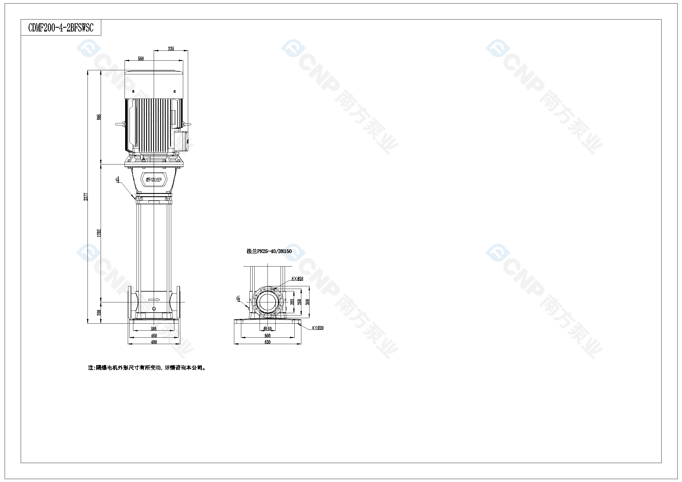 南方泵業CDM200-4-2B水泵明細參數