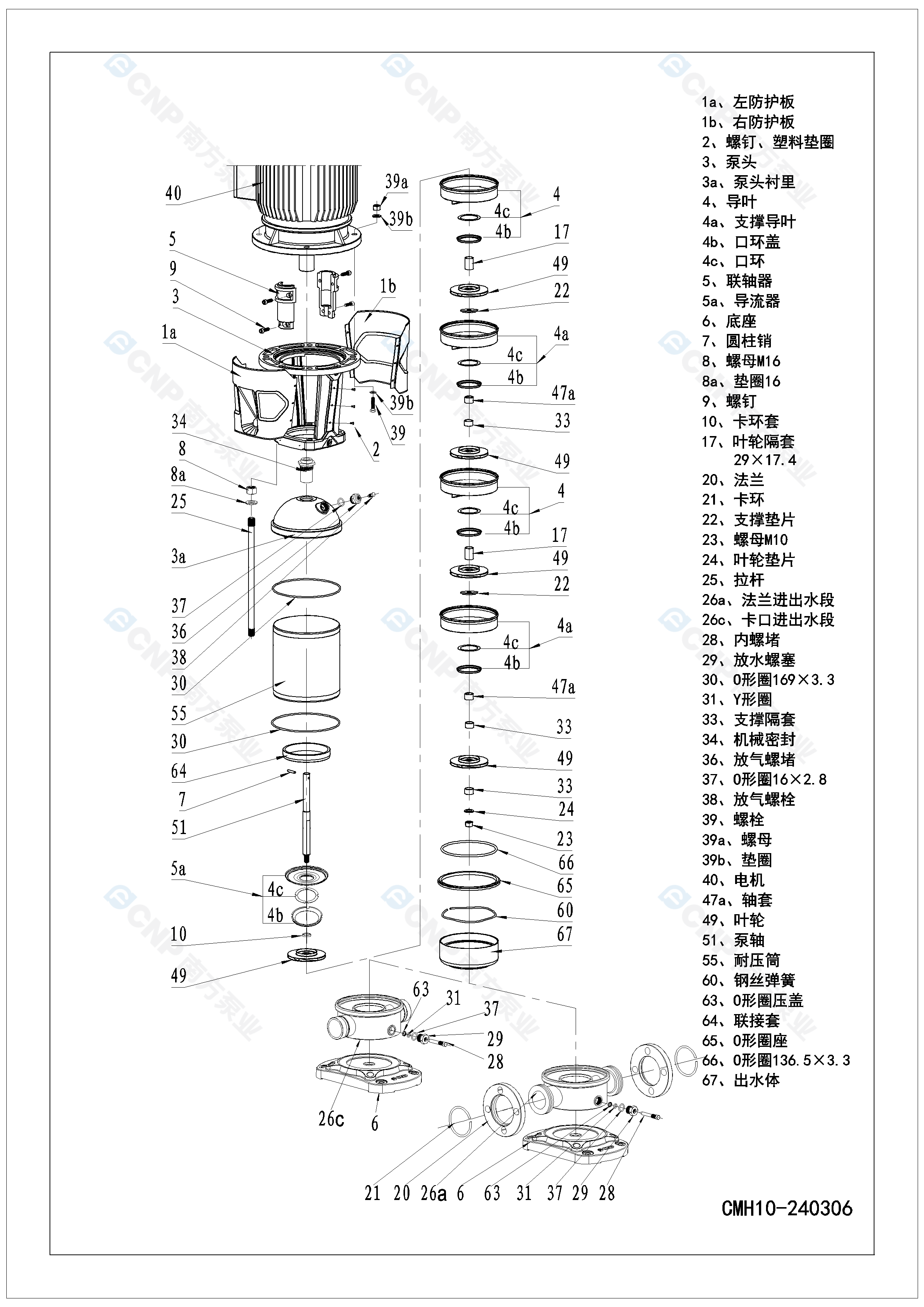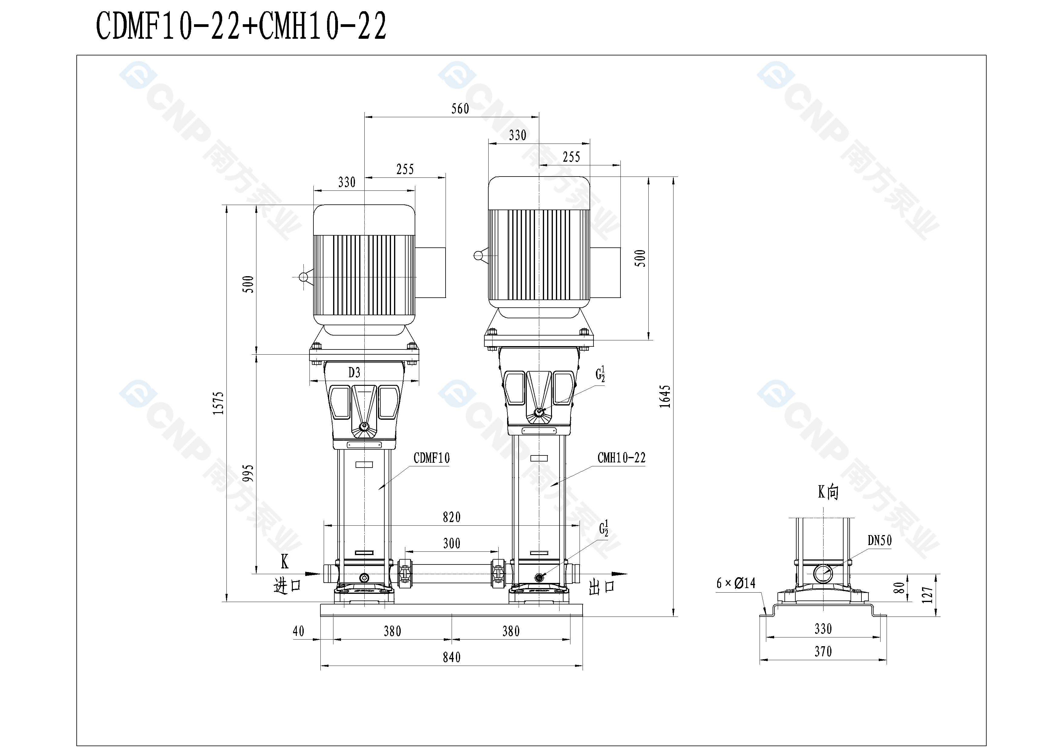 南方泵業CDMF10-22+CMH10-22水泵明細參數