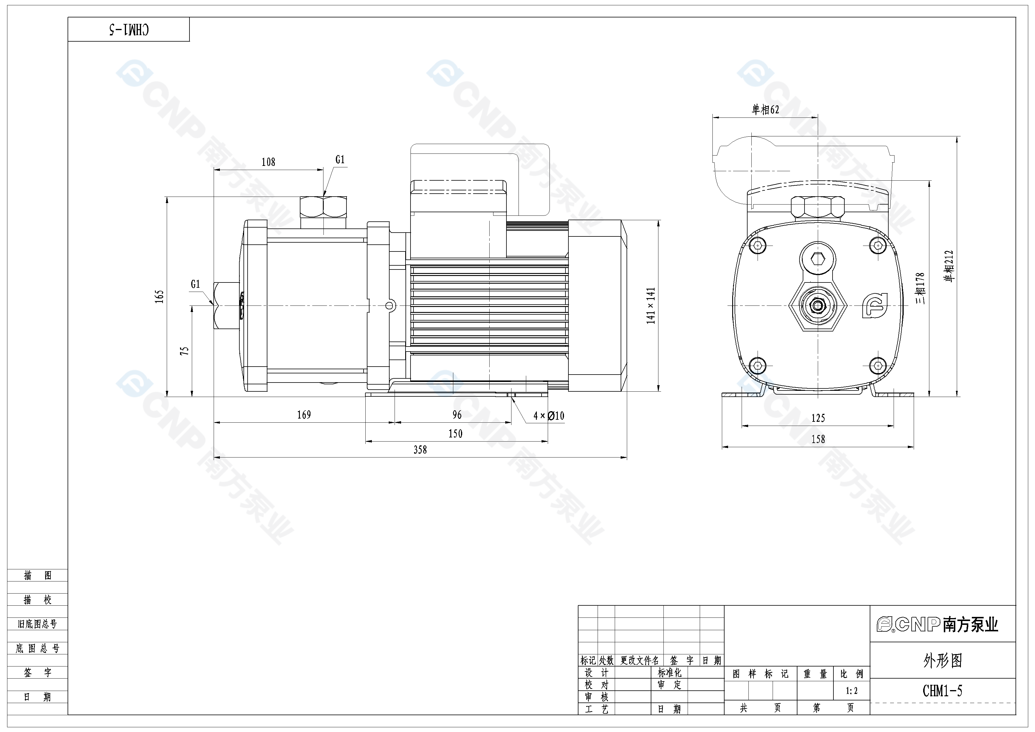 南方泵業CHM1-5水泵明細參數