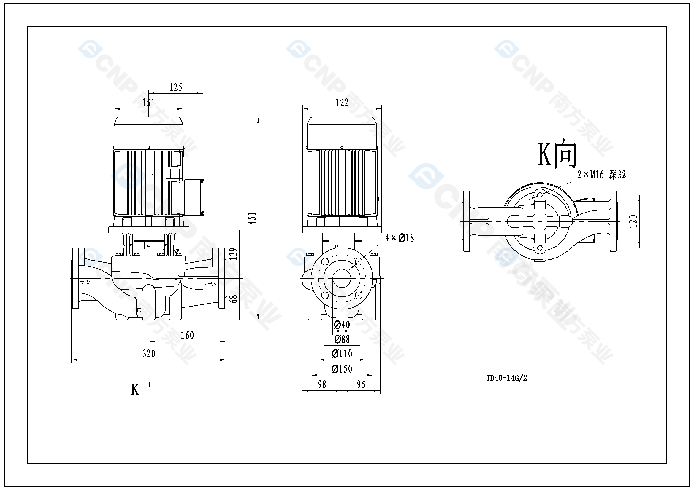 南方泵業TD40-14G/2水泵明細參數