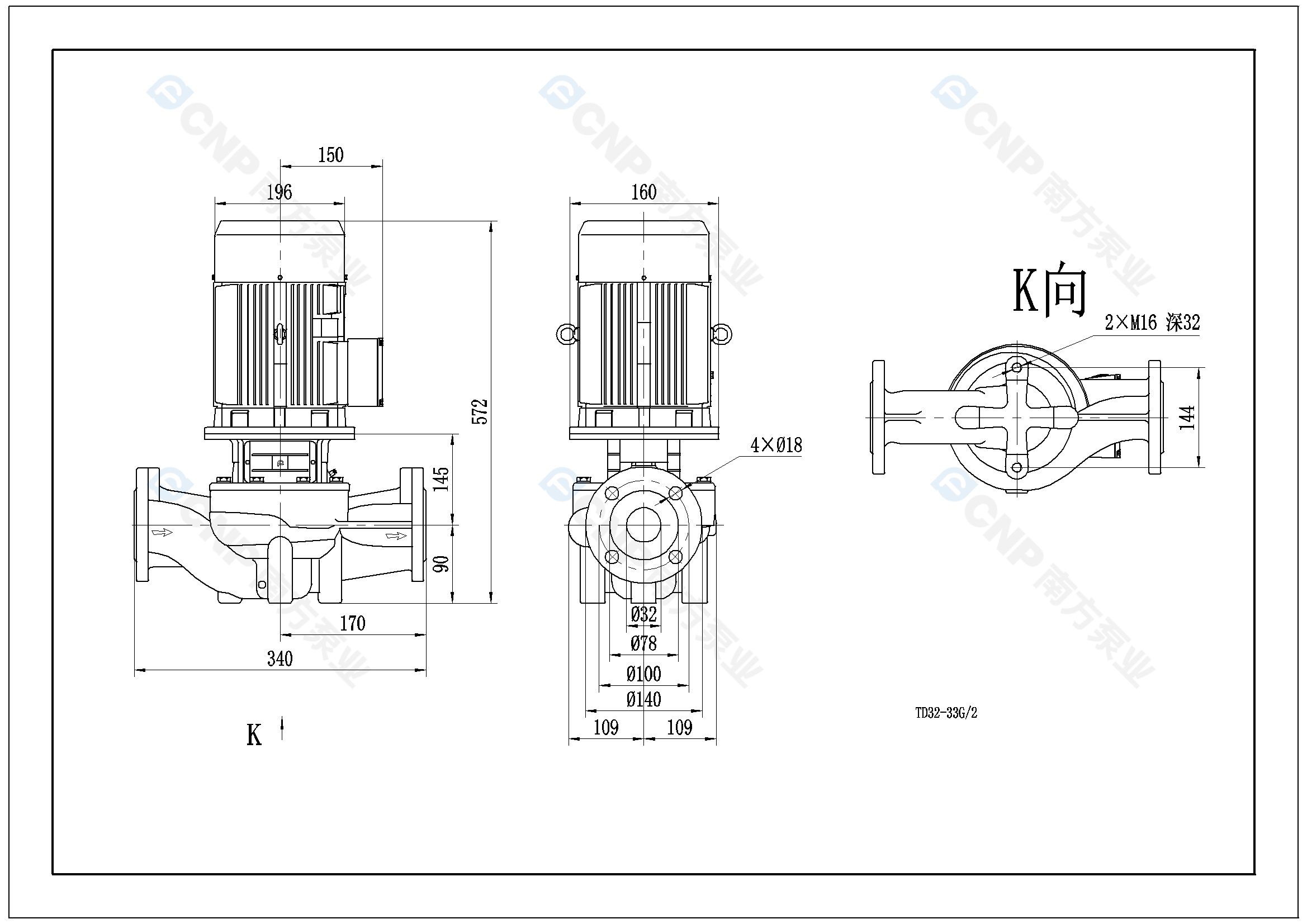 南方泵業TD32-33G/2水泵明細參數