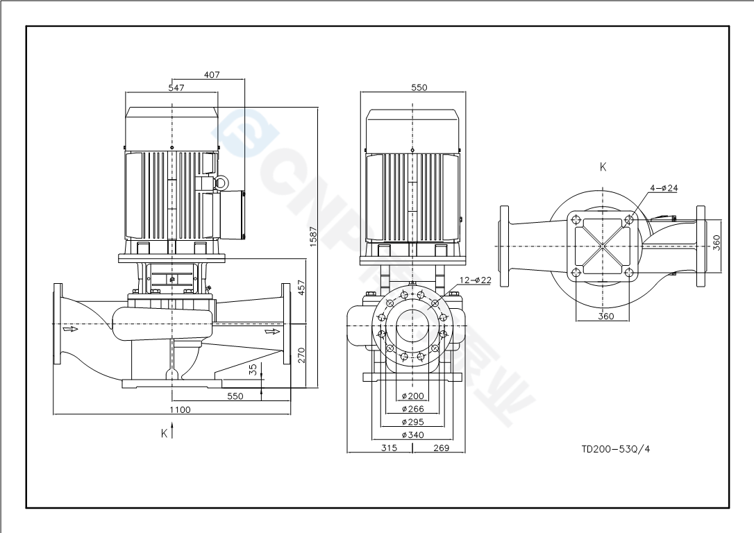 您的位置: 南方泵業 > 在線選型 > 管道泵 > TD(50Hz) > TD200-53Q/4