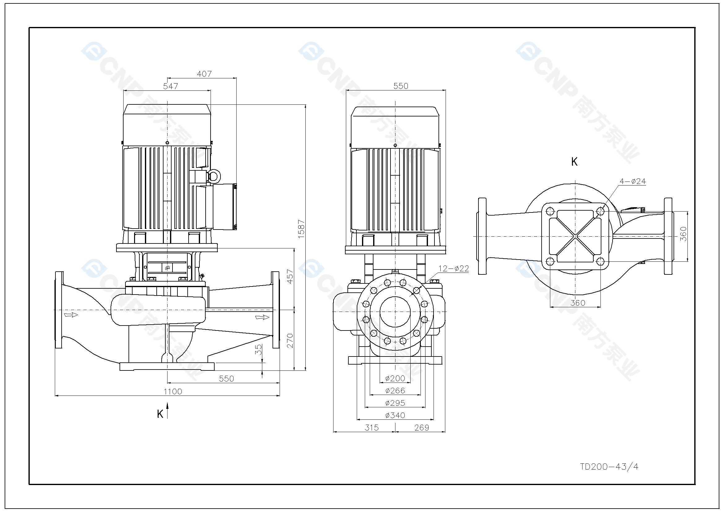 您的位置: 南方泵業 > 在線選型 > 管道泵 > TD(50Hz) > TD200-43/4