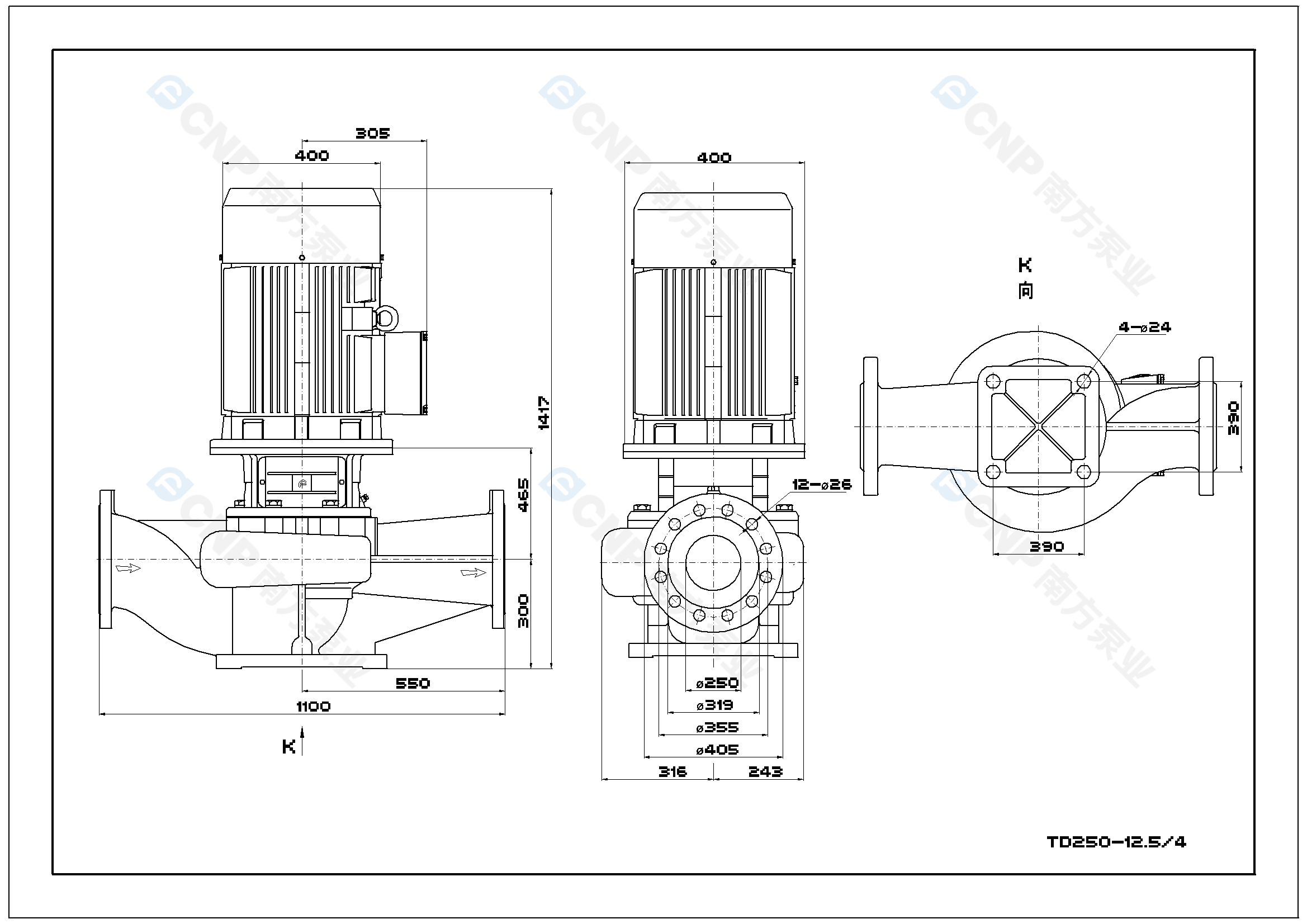 您的位置: 南方泵業 > 在線選型 > 管道泵 > TD(50Hz) > TD250-12.5/4