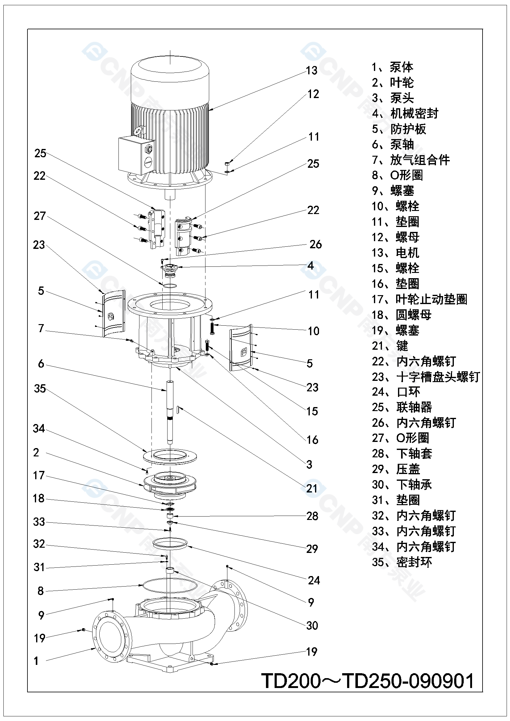 南方泵業TD250-39/4水泵明細參數